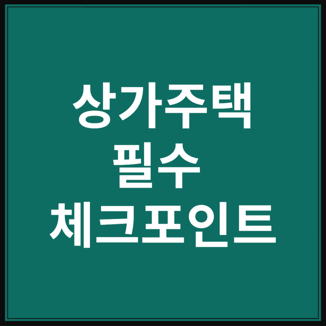1. 상가주택 필수 체크 포인트